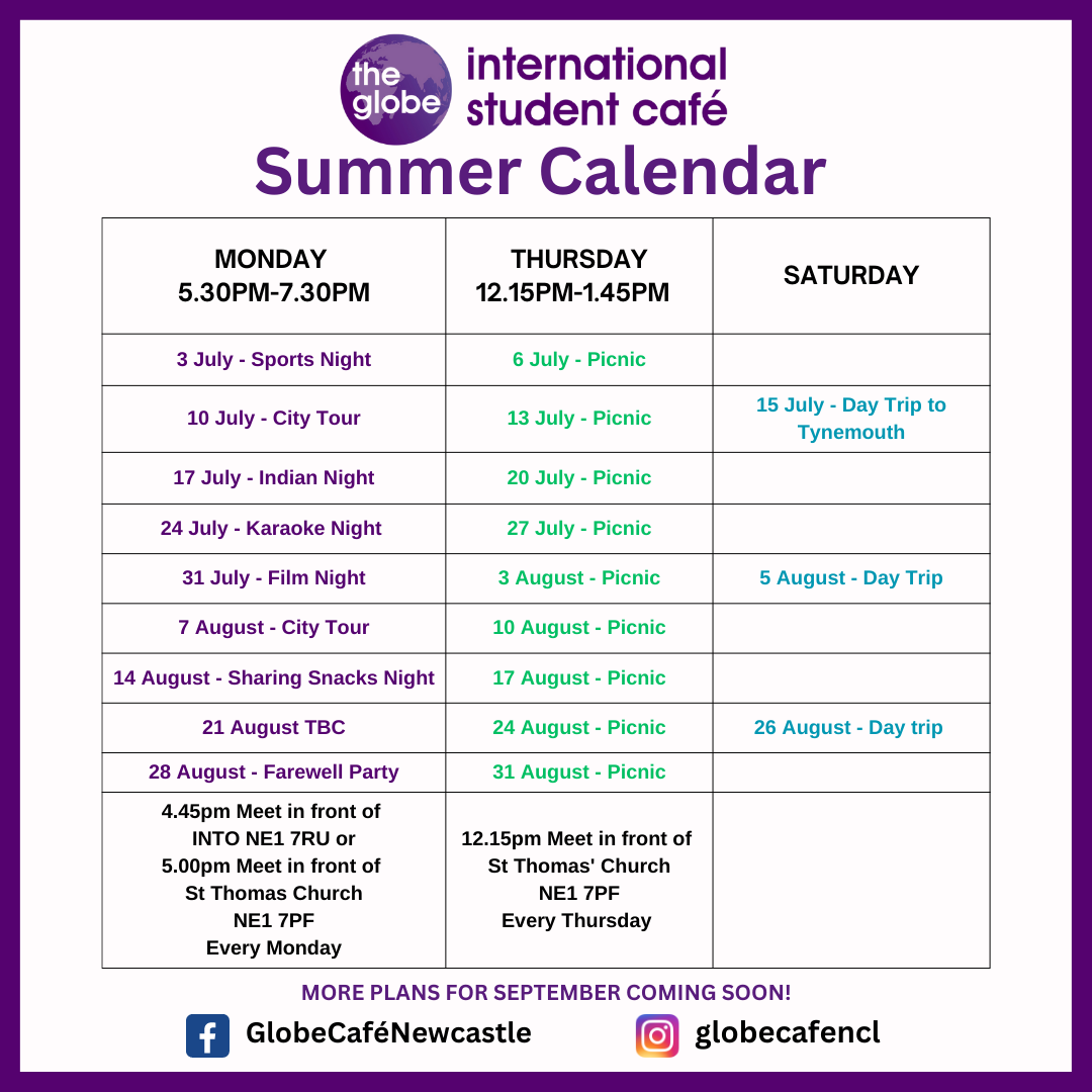 Summer Globe Café will be starting on Monday 3rd July! ?
